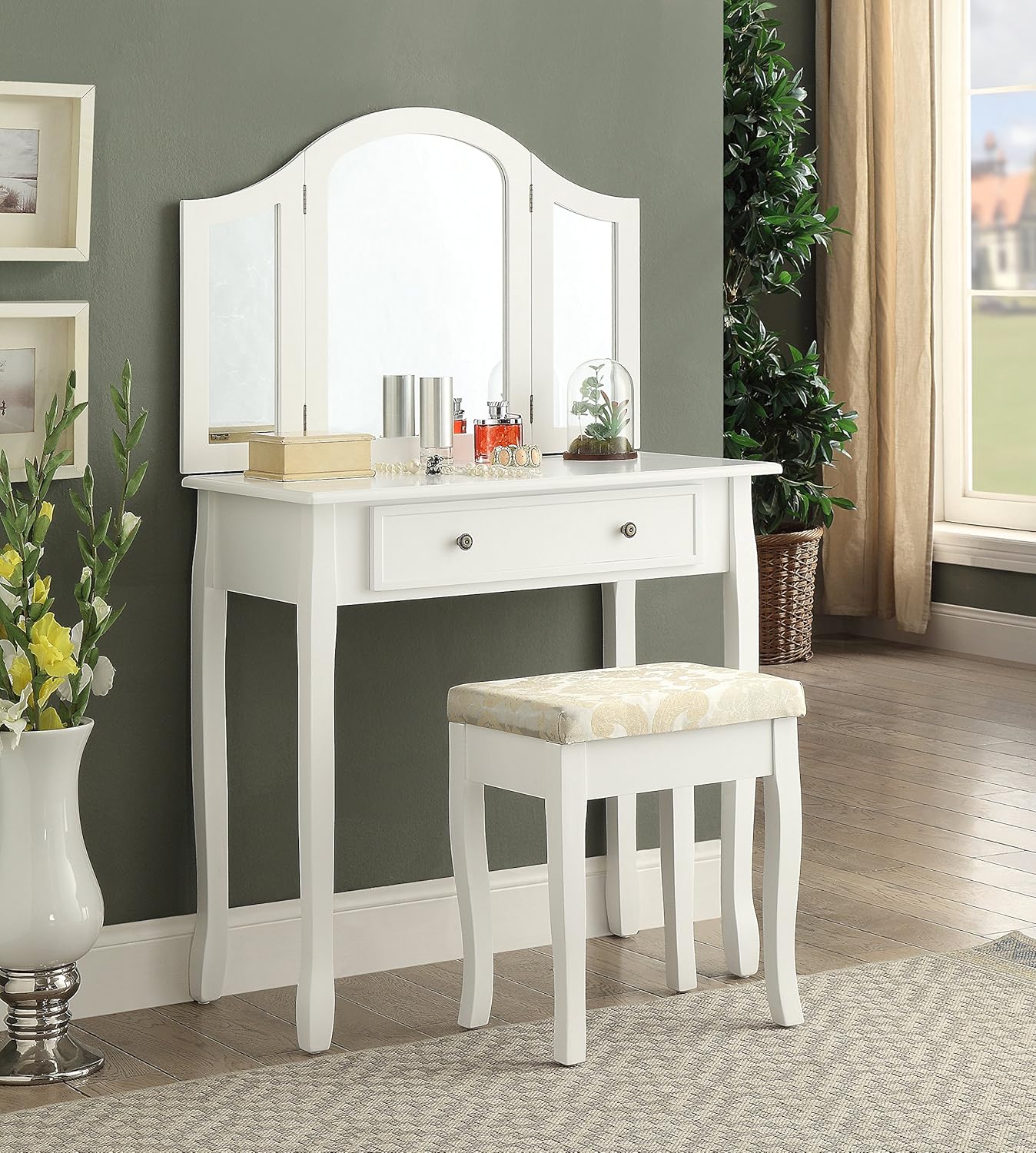 Amazon Com Roundhill Furniture Sunny White Wooden Vanity Make Up