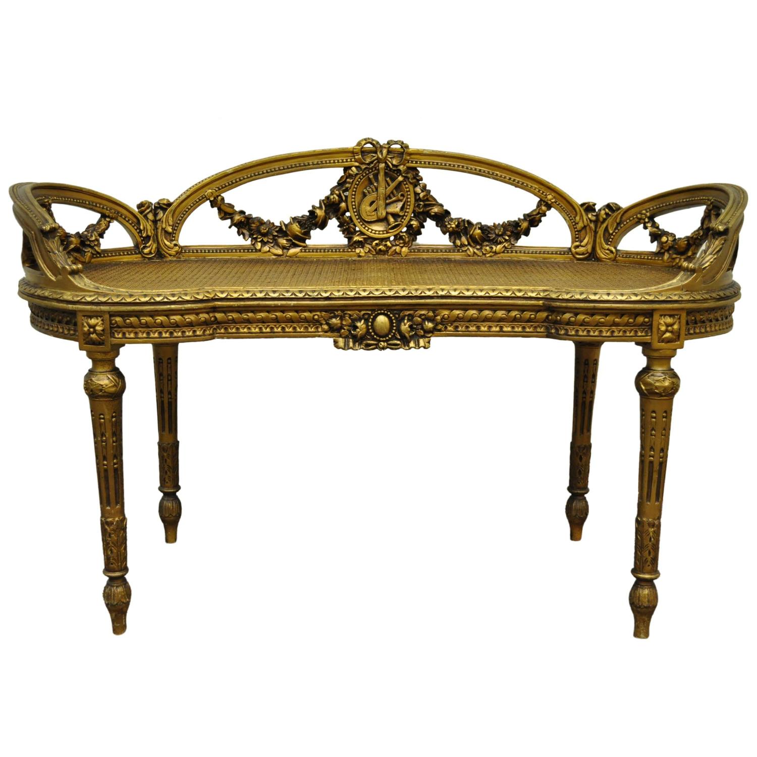 Vintage French Style Vanity Bench W Gold Highlights Etsy