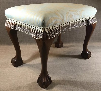 Antique Chippendale Ball Claw Wood Upholstered Vanity Stool
