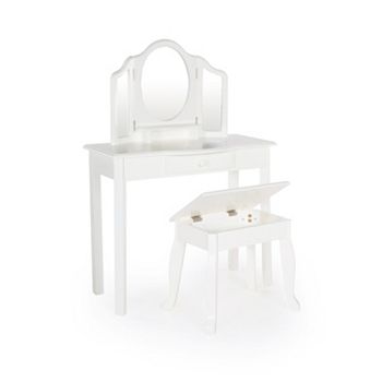 Kids Vanity Set Pink Makeup Table Mirror Seat Girls Toddler