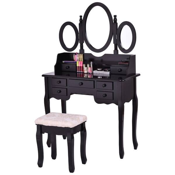 Shop Gymax Bathroom Make Up Vanity Table Set Tri Folding Mirror