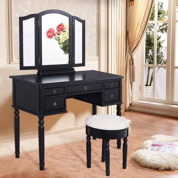 Shop Costway 43 X19 X56 Tri Folding Mirror Wood Luxury Vanity