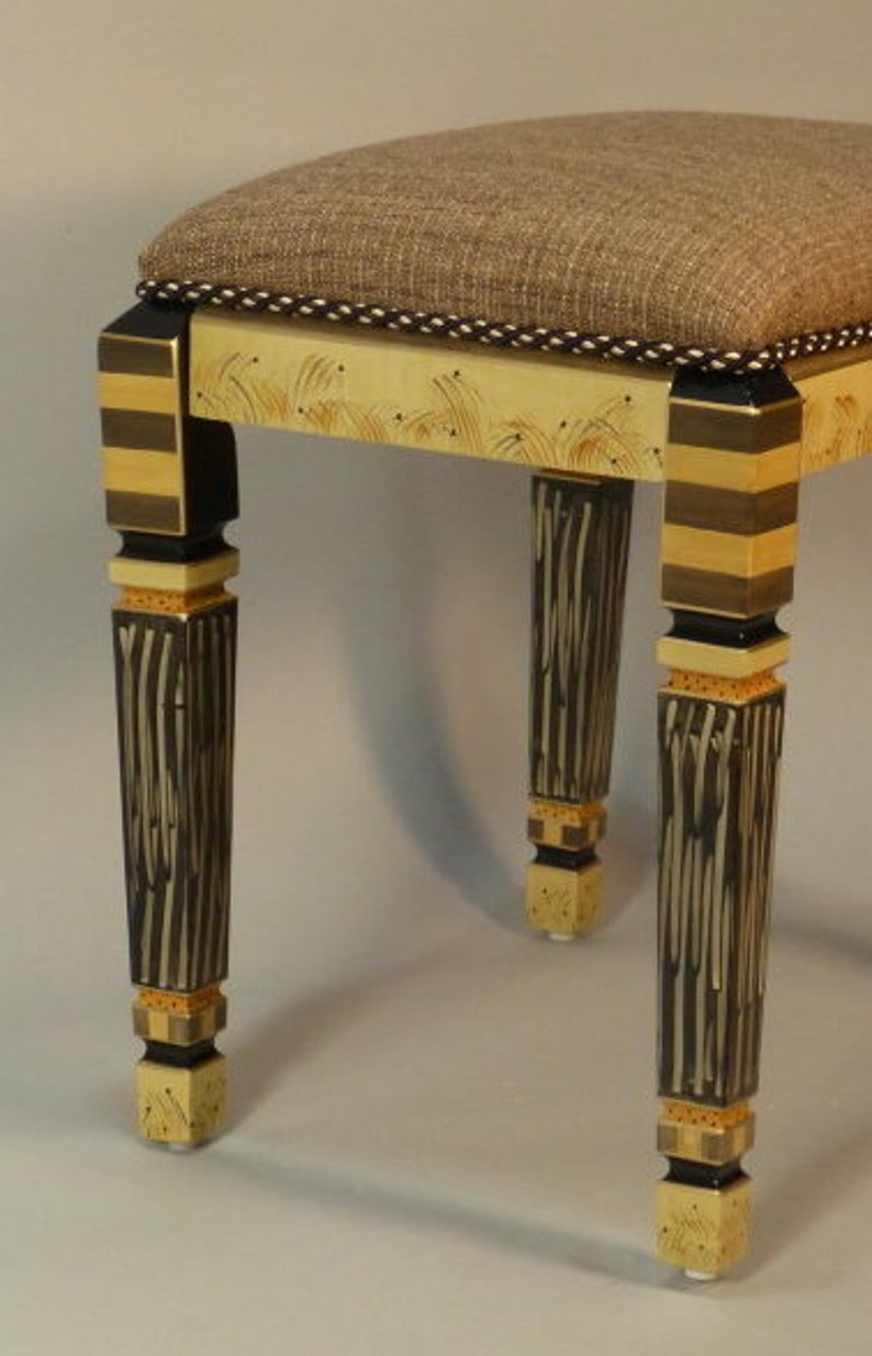 Handpainted Upholstered Carved Leg Vanity Bench Shown In Etsy