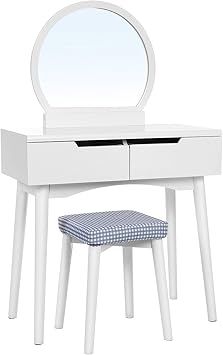 Amazon Com Vasagle Vanity Table Set With Round Mirror 2 Large
