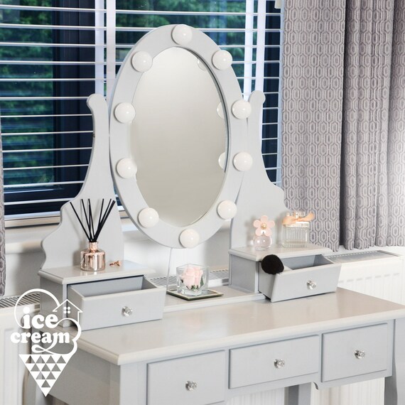 Grey Dressing Table With Hollywood Led Lights Vanity Mirror Etsy
