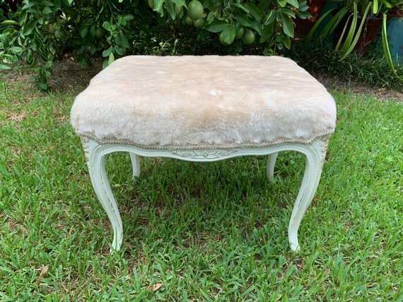 French Cabriole Leg Vanity Bench Faux Fur Stool White Vintage Etsy