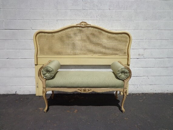 2pc Headboard Bench Bed Queen Size Cane Hollywood Glam Etsy