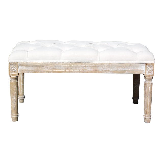 Vintage Whitewash Button Tufted Upholstered Bench Duet Piano Bench