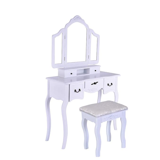Amazon Com Vanity Beauty Station Makeup Table And Wooden Stool 3