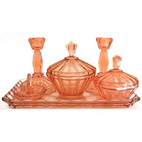 Pink Depression Glass Art Deco Vanity Set 854623
