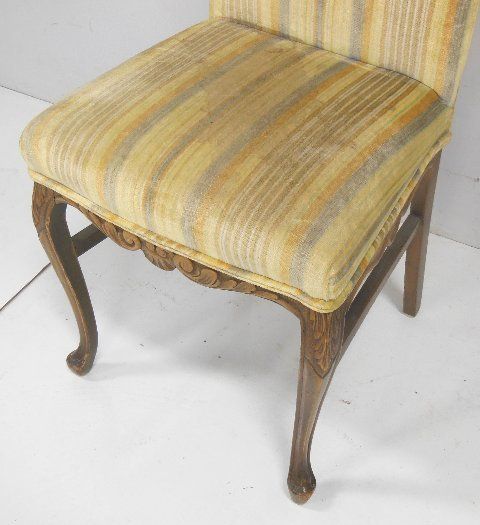Antique French Provincial Carved Vanity Bench Stool Brown Fabric