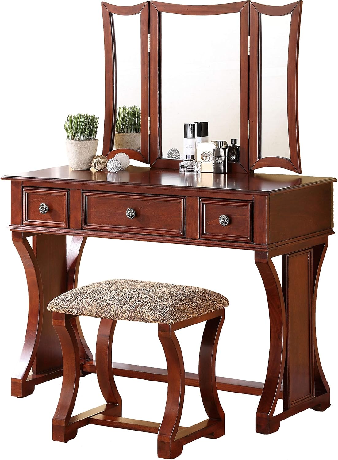 Amazon Com Poundex Bobkona Edna Vanity Set With Stool Cherry