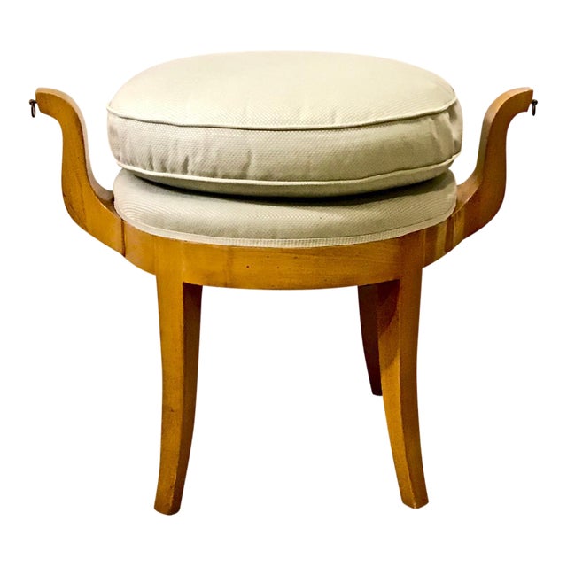 Vintage Wood Vanity Bench Stool With Cloth Covered Seat For Sale
