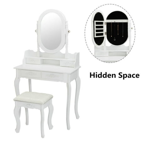 Ktaxon Vanity Jewelry Wooden Makeup Dressing Table Set W Stool
