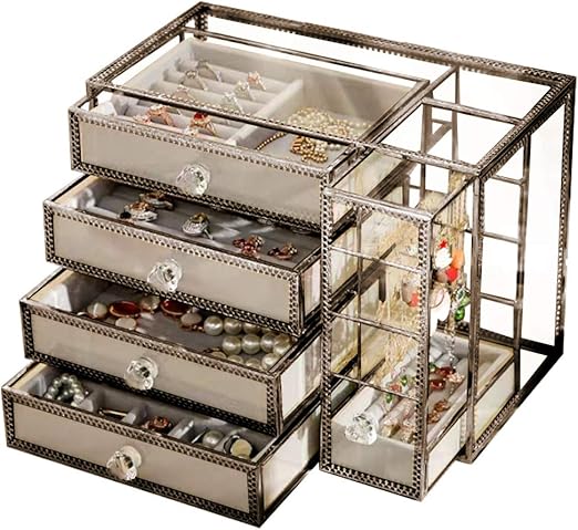 Amazon Com Hersoo Glass Mirrored Jewelry Box Vintage Metal Edge