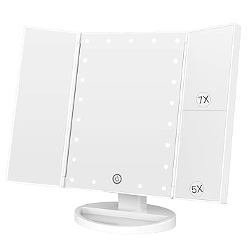 This type of lighted mirror is the better choice for properly illuminating a vanity space. Magicfly lighted makeup mirror 10x 3x 2x 1x magnifying vanity mirror with lights 21 led tri fold mirror with touch screen stand brightness adjustable travel magnifying mirror gold. Using a lush strong glass mirror the reflection from the mirrors with the help of high quality led lights give yourself the best treatment you deserve every morning.