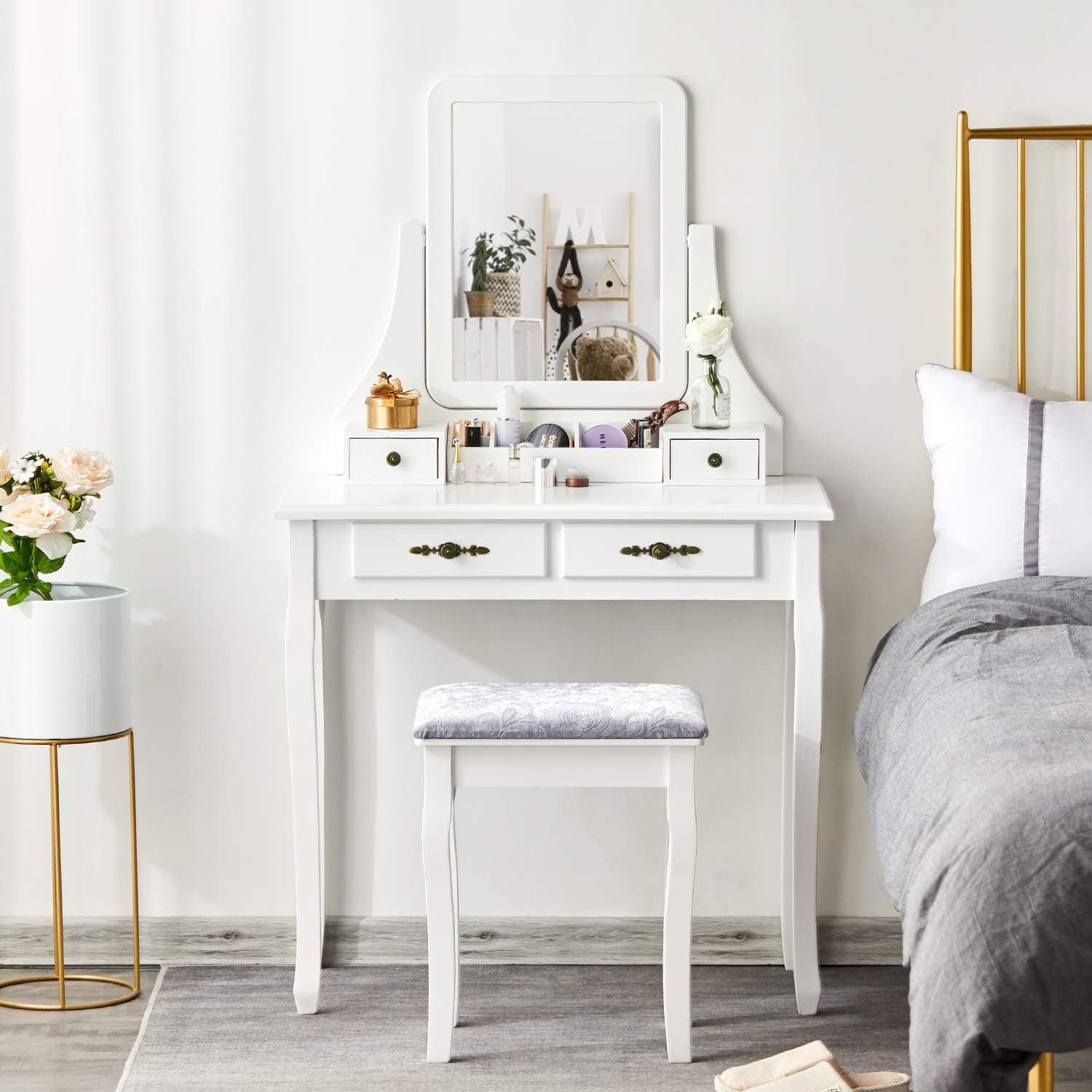 Costway Vanity Table Jewelry Makeup Desk Bench Dresser Stool