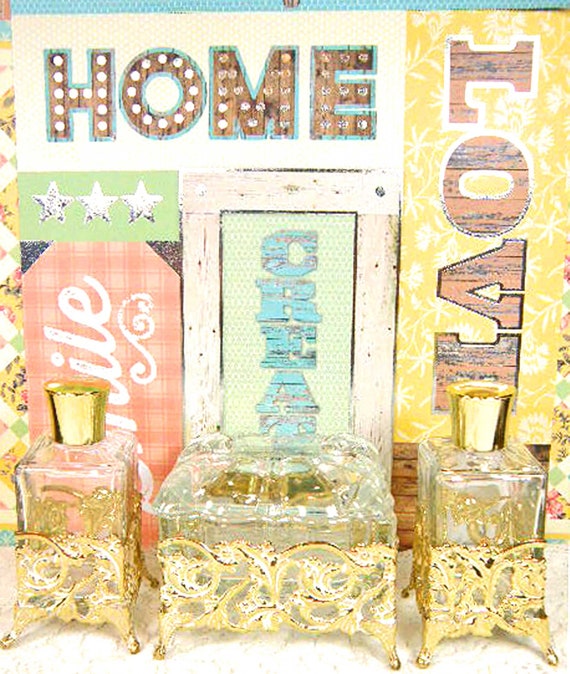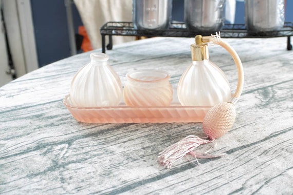 Vintage Glass Vanity Set Dressing Table Set 2 Clear Glass Etsy